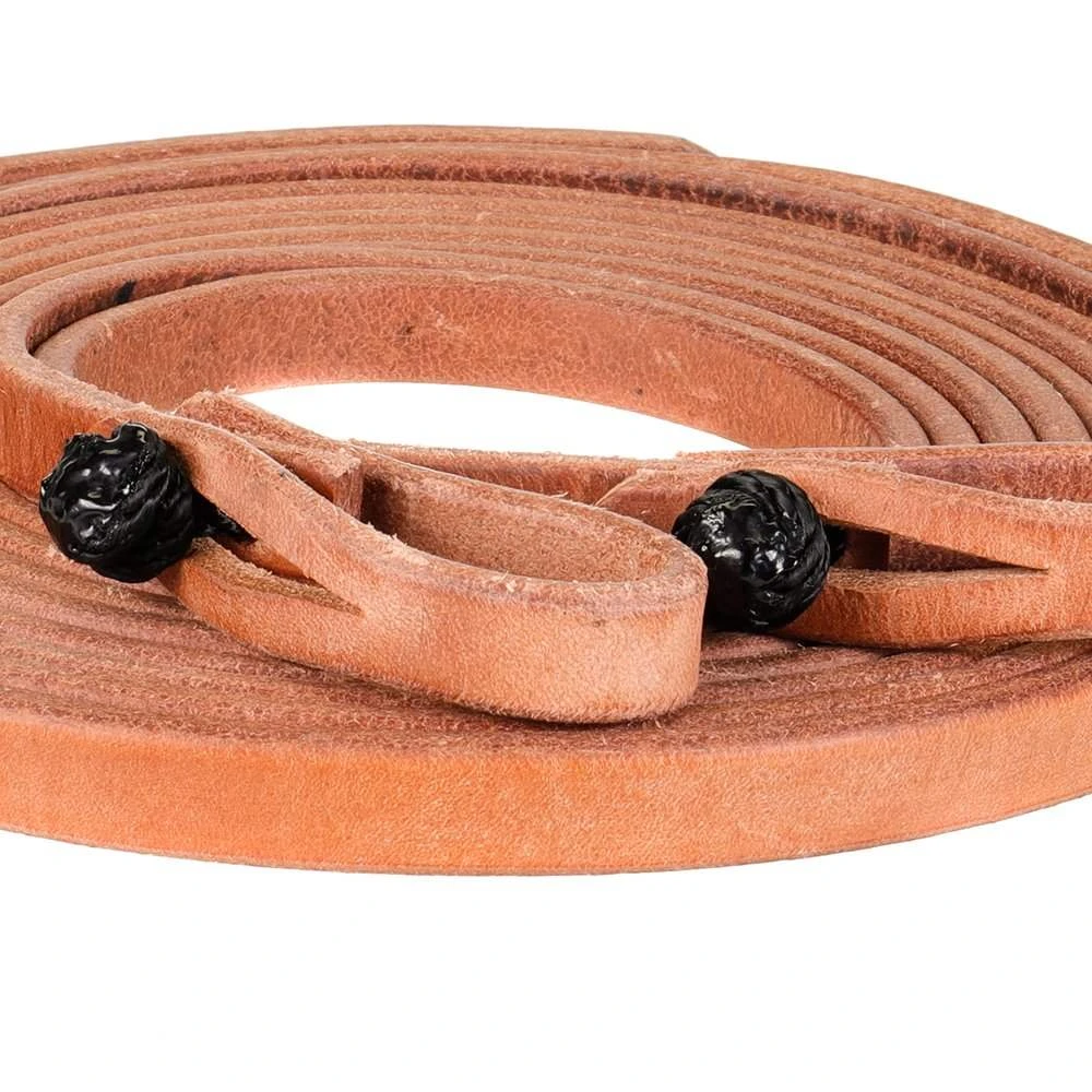 Cheaney Tack roping reins made out of harness leather. These reins have quick change ends.