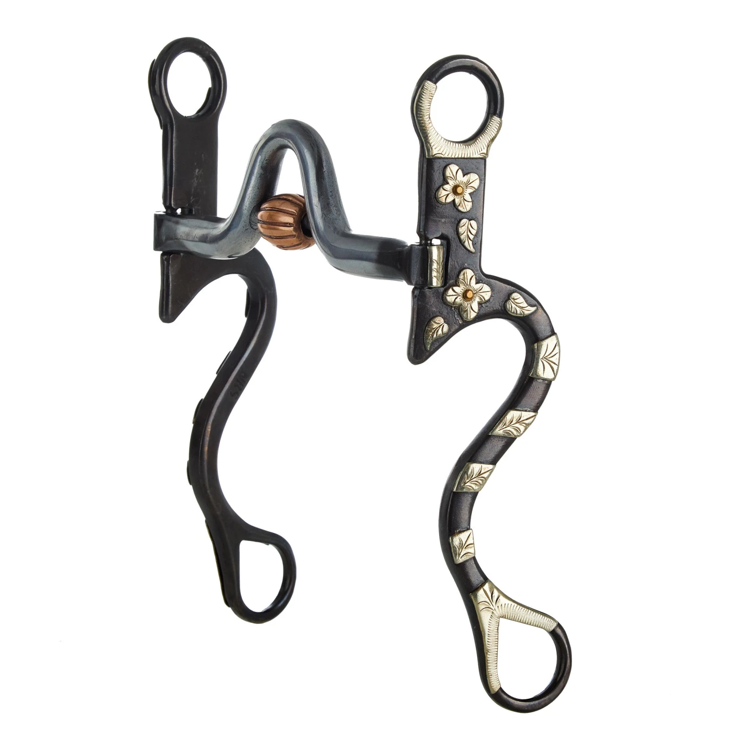 - NEW! Blackened steel finish with engraved silver bars going down the shank of the bit, engraved floral detail on the purchase of the bit, and finished with engraved silver work on the rings of the bit.
