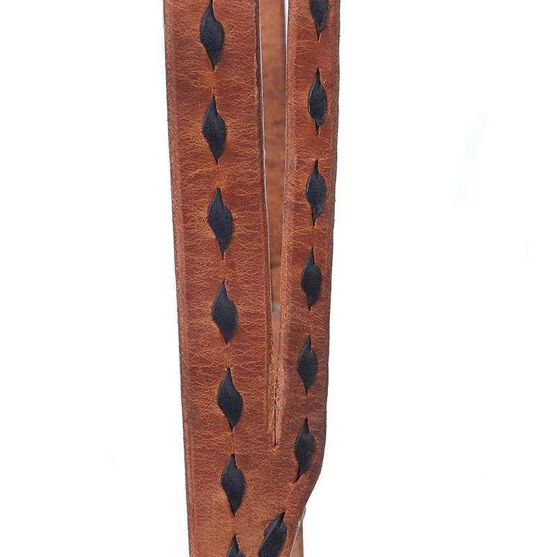 A punchy hedstall with just a little flash! The navy buckstitching will make your horse stand out. The leather is naturally colored and is 3/4″ thick.